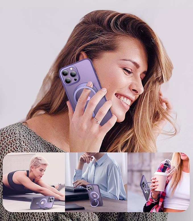 iPhone 13 Pro Max 用 ケース あいほん13 Pro Maxカバー Magsafe対応 アイフォン13 Pro Max カバー 360 回転スタンド カメラレンズ保護 メタルフレーム 高感度タッチ 隠しスタンドケース ワイヤレス充電 車載ホルダー 対応 ストラップ穴付き 半透明 指紋防止 黄变防止 6.7インチ(パープル)