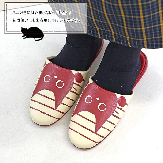 ピョコンと顔を出すかわいいネコがプリントされた抗菌スリッパ。