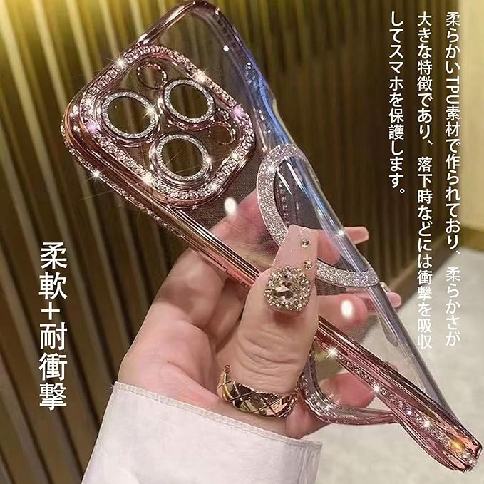 iphone 15Pro Max 用 ケース Magsafe対応 可愛い キラキラ ラインストーン スマホケース アイフォン 15Pro Max 用 クレア 透明 スマートフォン ケース カメラレンズ保護 耐衝撃 シンプル 韓国 人気 携帯ケース (YH-SFCX15Pro Max-yin)