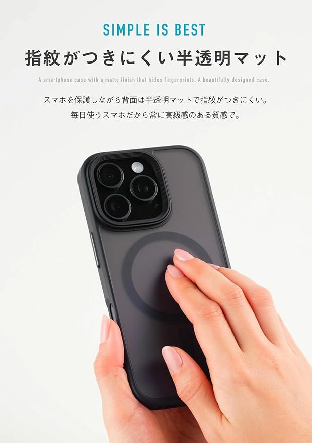 ✅️【指紋が目立たないマット仕様】サラサラ下手触りで指紋がつきにくい半透明のマットケースです。