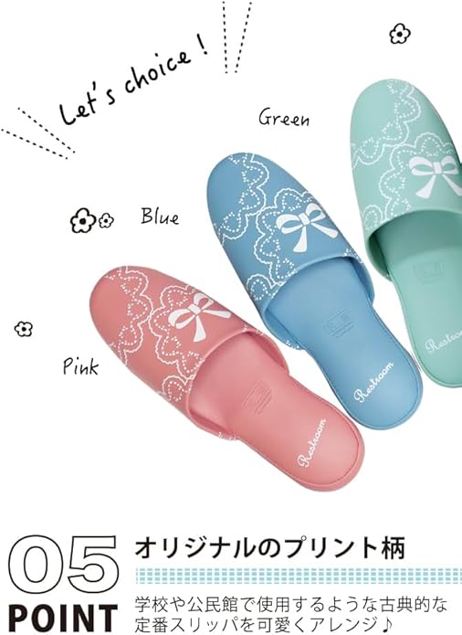 トイレスリッパ レースとリボン柄 (レディース用 約22~25㎝/全4色) サニタリー トイレタリー スリッパ [抗菌/ビニール]