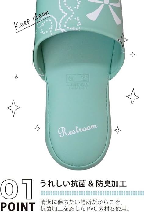 スリッパ全体に抗菌加工を施しているので、安心して履いていただけます。