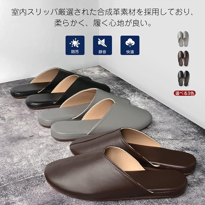 [YAKIDA] オフィス レザースリッパ ルームシューズ 高級 室内履き 汚れにくい 水拭き 静音 滑り止め 業務用 来客用 携帯用 オールシーズン