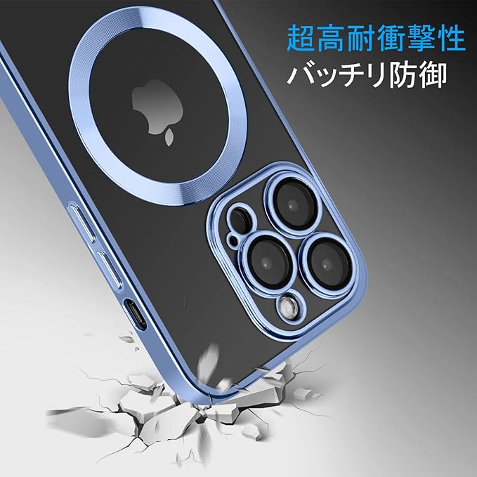 iPhone14promax ケース iPhone14Pro Max 用 ケース Magsafe対応 米軍MIL規格取得 耐衝撃 スマホケース 指紋防止 黄変防止 カメラ保護 透明 2023年新型 アイホン14pro max 用 6.7インチ (ブルー)