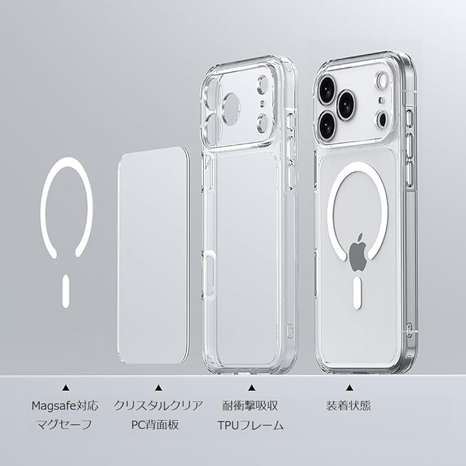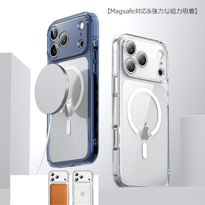 【MagSafe対応】ケースと一体型となった金属メタルで構造リングがMagsafe充電器やマグネットスマホホルダーに対応しております。マグネットの車載ホルダーやワイヤレス充電等に吸着性があり、他のMagSafe式アクセサリなどもサポートします。Qi充電ワイヤレス充電にも対応しておりますので、お気軽にご使用いただけます。