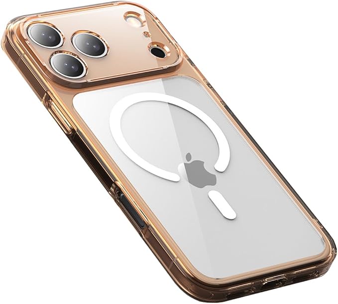 【MagSafe対応・クリスタルクリア】 For iPhone17 ProMax ケース カメラレンズ保護 衝撃吸收 超薄型 軽量 すり傷防止 黄変防止 アイフォン17 プロマックス用カバー スマホケース おまけ強化ガラスフィルム付き cs129b (i17promax, オレンジ)