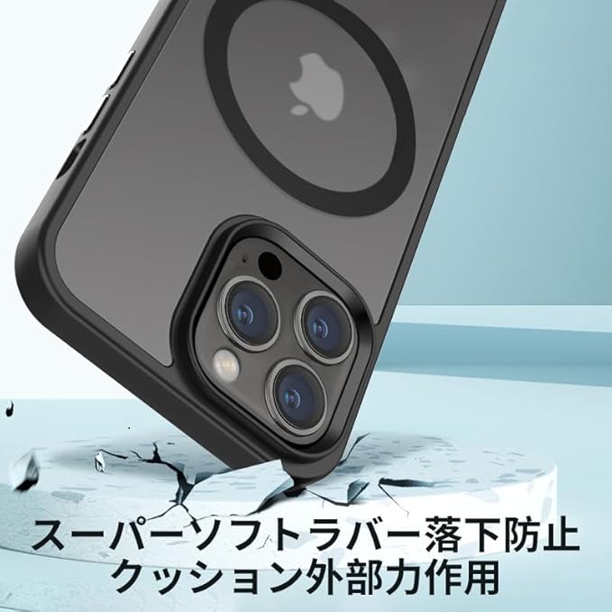 いくら気をつけていても落とす時がある!でも大丈夫!2Mの高さから26回以上落としても本体は綺麗に無傷!背面「カメラエアバッグ」耐衝撃技術も備えています。耐震性の高いTPUバンパーと頑丈なPC背面と組み合わせた二重構造で、非常に高い耐衝撃性を誇り、アイフォン14 Pro Max を全方位からしっかりと守ります。