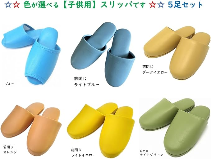 [TOKYO SLIPPER] 子供用 ビニールスリッパ 前閉じ【5足セット】【抗菌 水拭き可 滑り止め付き】 かわいい キッズ 子ども ジュニア用 幼稚園 自宅用 業務用(ライトイエロー)
