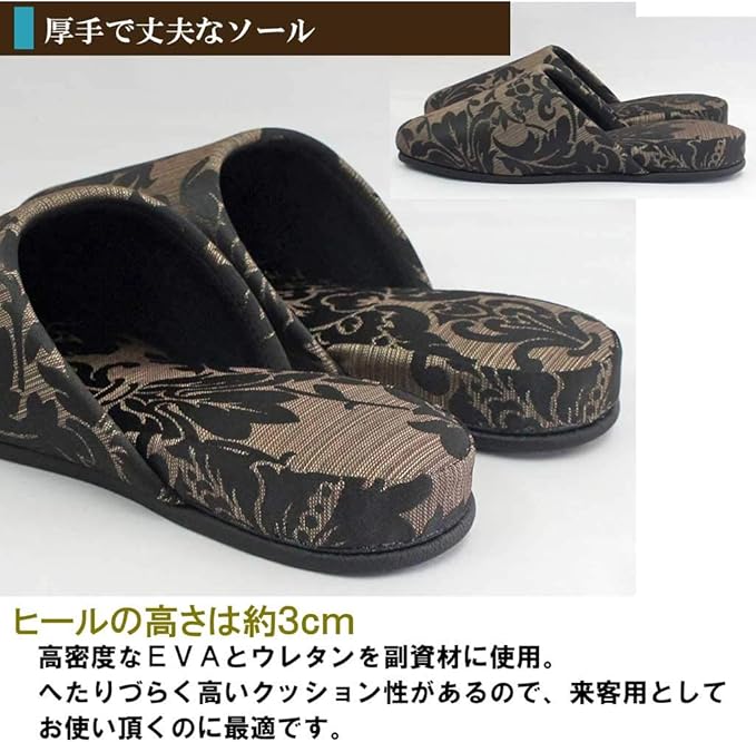 ベルギー製のインテリア用高級生地を使用しています。スリッパではなかなか見られないレベルの素材ですが、スリッパもインテリアの一部と捉えると存在意義のある製品です。実際、価格にしては人気があり、よく売れています!