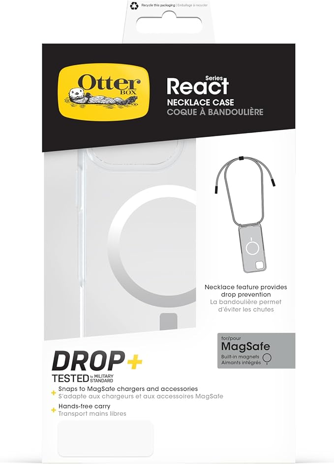 【OtterBox】全米No1ブランド 薄型 軍事規格の試験クリア iPhone 16 Pro Max用 耐衝撃 衝撃吸収 米軍MIL規格 Magsafe対応ケース React Necklace 首掛け ストラップ クリア 【国内正規品】 〔オッターボックス〕