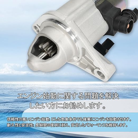【故障現象】下記の症状が発生した場合は、早めのご交換をおすすめ致します。①エンジンが始動しない:モーターが回らず、エンジンが始動しない。②回転が遅い:モーターの回転が遅く、エンジンの始動が遅れる。③起動時に異音がする:異常な音がモーターから発生する。④発煙や焦げ臭い匂いがする:モーターから発煙や焦げ臭い匂いがする。