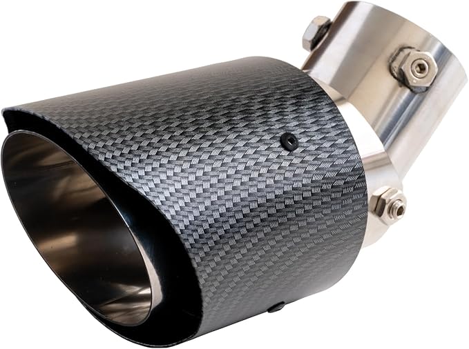 汎用設計モデルで下向きマフラーの直径サイズ42~56mm対応、高品質ステンレス製本体にカーボン調カバー付き