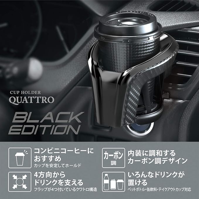 カーメイト 車用 ドリンクホルダー カップホルダー クワトロX カーボン調 ブラック DZ522