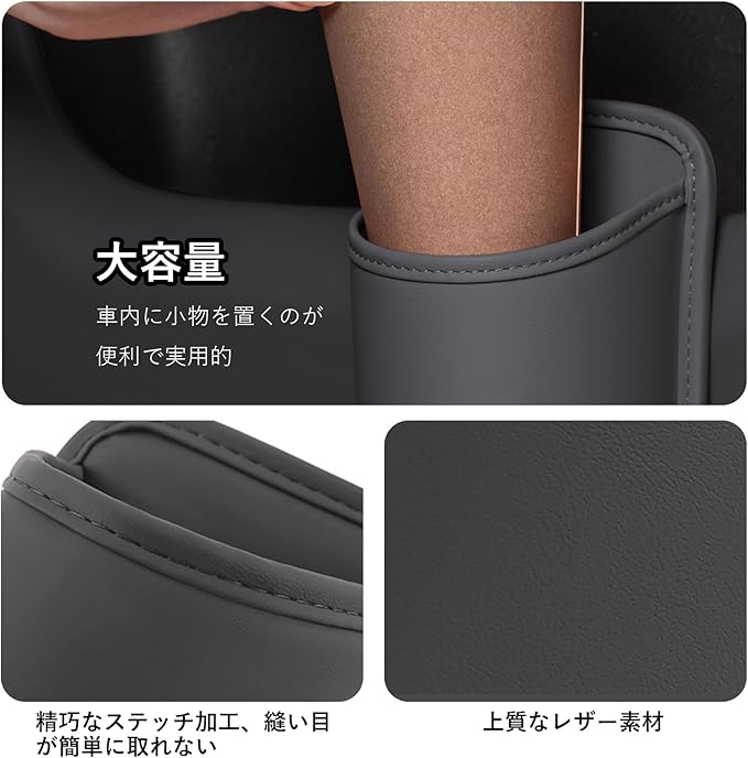 【高品質皮革材料】豪華な合成皮革で作られ、車の内装と完璧にマッチするファッションデザイン。このドリンクホルダーは、柔らかさと耐久性の高品質PUレザー素材を兼ね備えており、長時間の使用でも快適です。どんな車種にも対応。