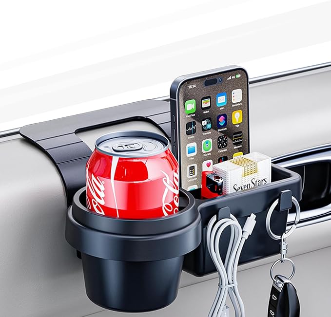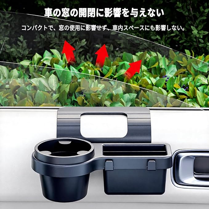 【多機能収納】ドアの端にロッカー、携帯電話のホルダー、コップのホルダーとして、鍵、Bluetoothイヤホン、その他の小物を収納することができる車窓多機能収納