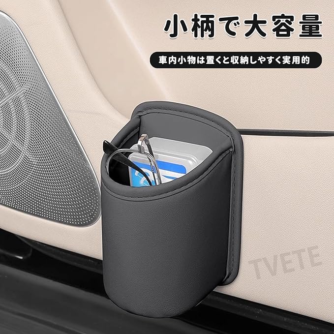 ドリンクホルダー 車 カップホルダー 増設 収納ボックス クリップ式 ドアポケット 後部座席 カップボックス PUレザー 飲み物 小物収納 ゴミ入れ 車用 収納 カー用品(約15x11cm ブラック)