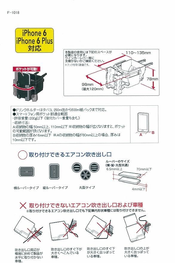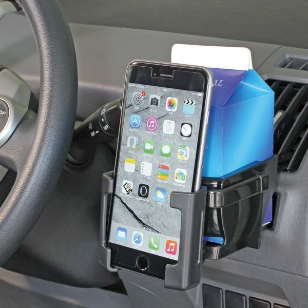 スマートフォンとドリンクを同時に収納することができます。500mlペットボトル、500ml紙パック、細缶、太缶をしっかりホールドします。専用取付フック付。
