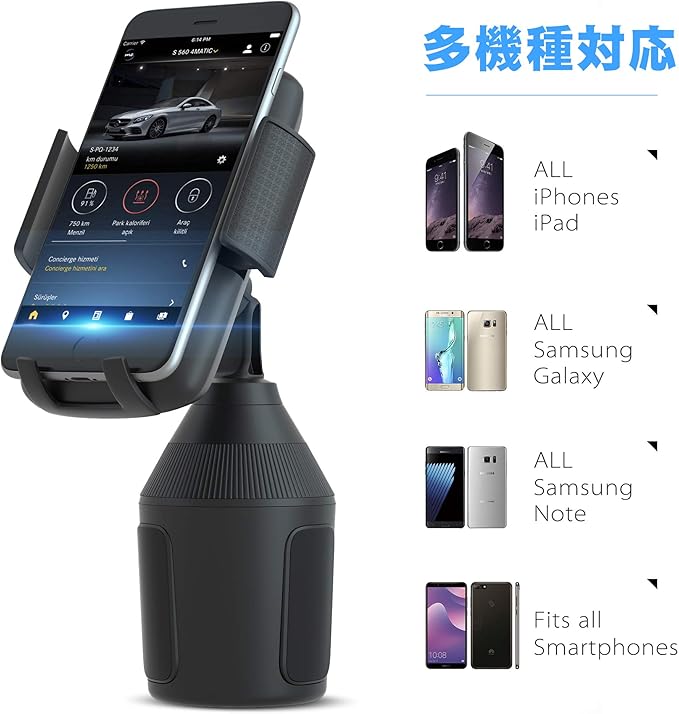 Ocaatech スマホ用車載ホルダー ドリンク式携帯ホルダー スマホホルダー スタンド携帯ホルダー 柔軟なアーム 取り付け簡単/360度回転可能/片手操作/多機種対応(ブラック)