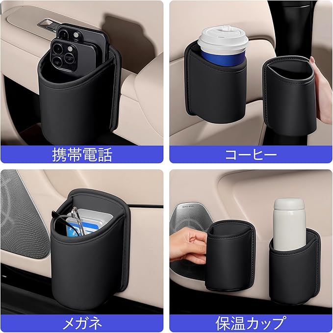 2個入り ドリンクホルダー 車 カップボックス 小物収納 ゴミ入れにも使用可能 車載 シートポケット 車用 収納 増設 ドア 後部座席 ウォーターカ 専用 ップボックス 便利グッズ レザー (ブラック)
