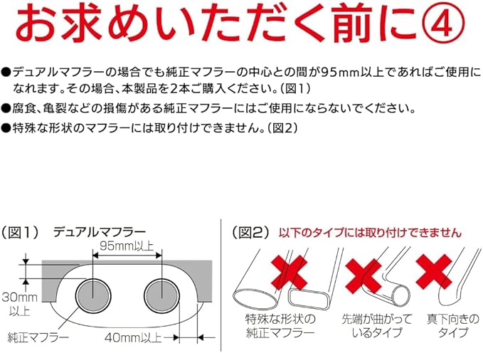 ●下向きの純正マフラーを大口径ストレートタイプにドレスアップできるマフラーカッターです。