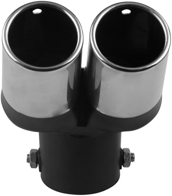 車外用品 下向き式 マフラーカッター 2本出し 排気管 エキゾーストチップ マフラー パイプ テールパイプ径38-53mm適応 口径2.5インチ 外装 パーツ ドレスアップ カスタム ステンレス製 (黒銀)