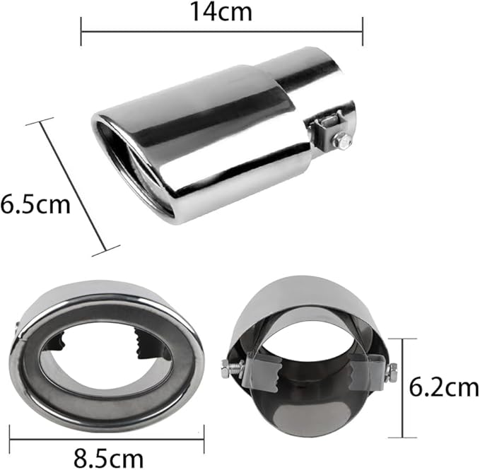 装着サイズ範囲:装着可能マフラーサイズ:38㎜Φ~53mmΦ(大体排気量1.0-2.0Lの乗用車に適応)。汎用タイプなので、取付直径約6.2cm(2.5inch)以下なら、バンパーの干渉などが問題なければ取付可能、ご購入前にお持ちの車両のエキゾーストパイプ外径を必ず計測してください!