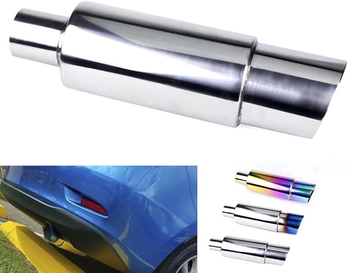 MUTEKI マフラー カッター テールスロー 排気テールパイプ ステンレス製 簡単装着 チタン風 汎用(銀)