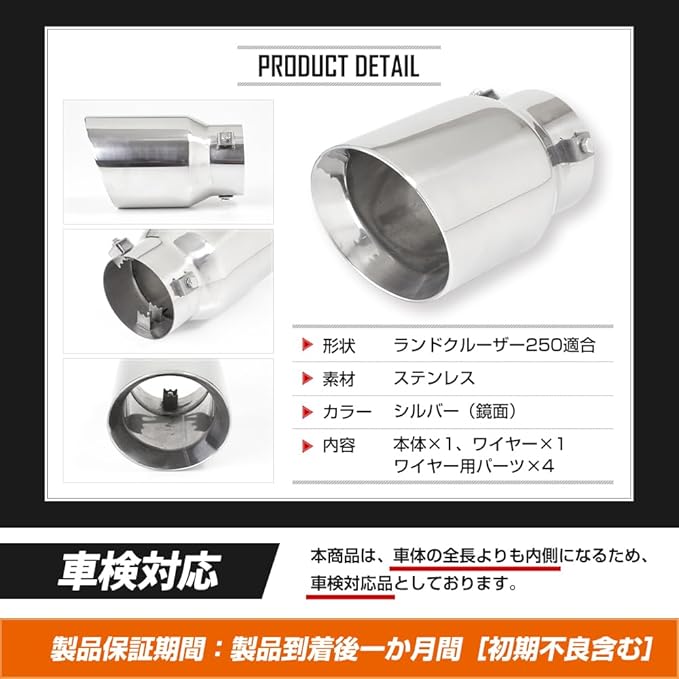 CORSA ランドクルーザー 250 適合 マフラーカッター 1本出し ランクル250 メッキ カスタム 外装 パーツ アクセサリー ドレスアップ ステンレス トヨタ (250系 ランドクルーザー)