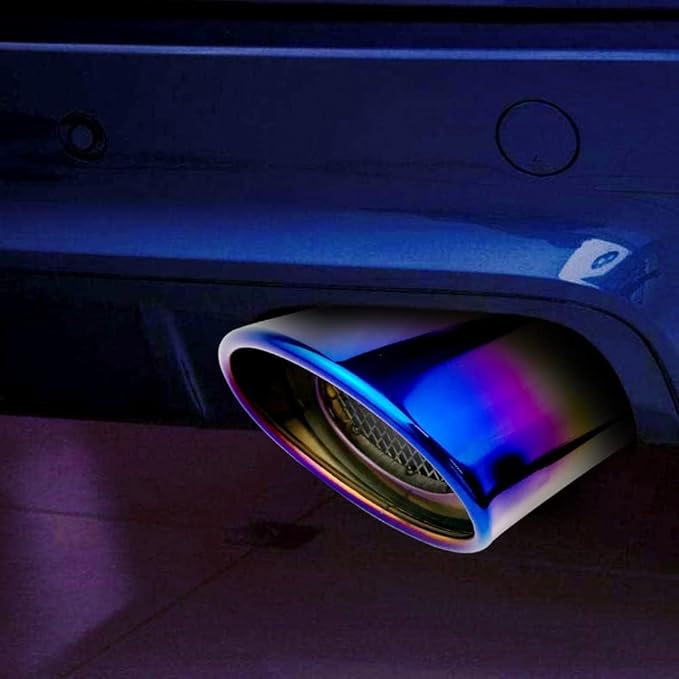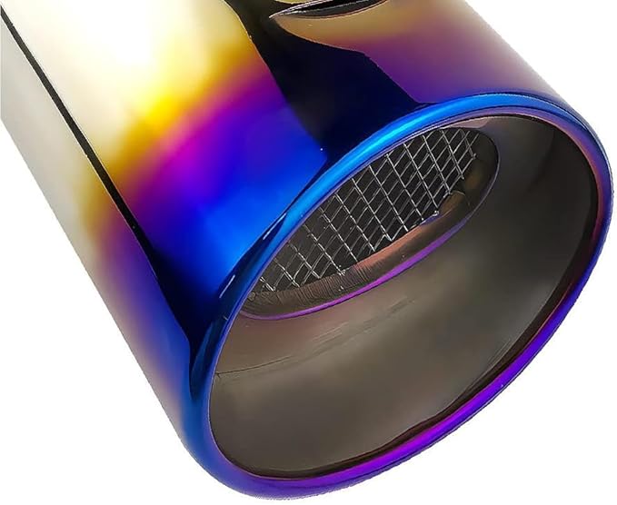 車用 マフラーカッター ストレート式 口径2.5インチ エキゾーストチップ ステンレス製 斜めカット 大口径 排気管 メッシュ付き マフラー パイプ テールパイプ 外装 パーツ カスタム 大型車 軽自動車 取付直径38-53mmに対応 ブルー