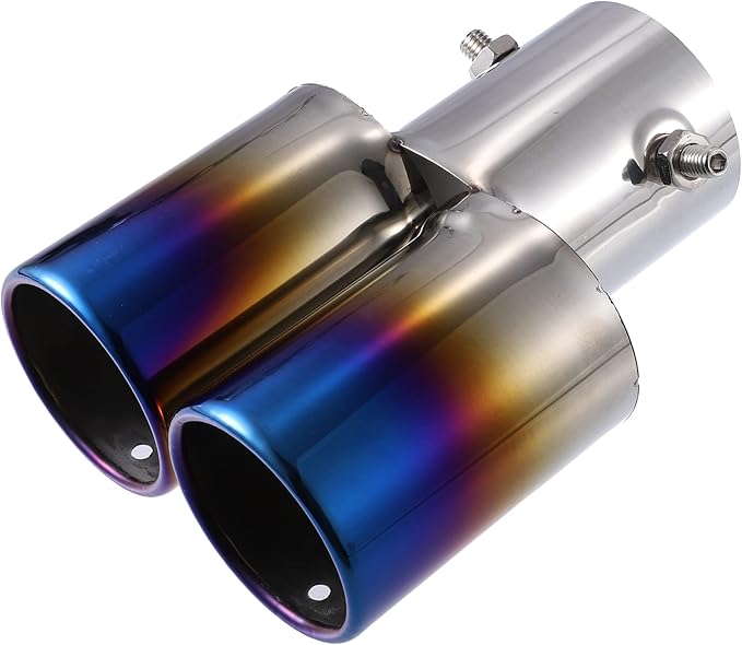 マフラーカッター マフラー エキゾーストパイプ 排気管 2本出し ダブルアウトレット 汎用 車外用品 マフラーチップ テールパイプ ボルトオン 金属 適用径61mm チタン焼き調