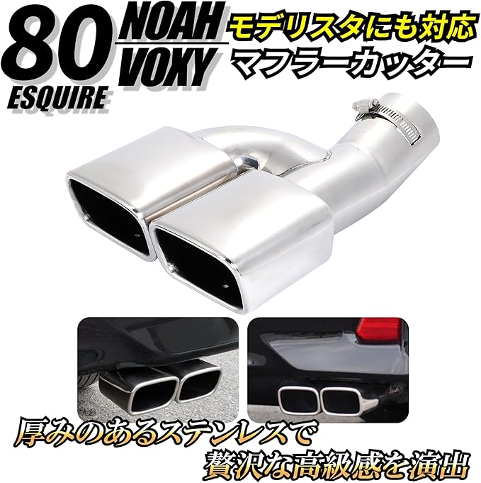 マフラーカッター トヨタ 80系 ノア ヴォクシー エスクァイア専用 モデリスタ対応 2本出し スクエア ステンレス