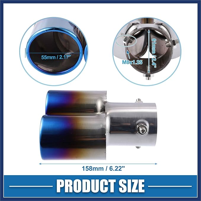 マフラーカッター マフラー エキゾーストパイプ 排気管 2本出し ダブルアウトレット 汎用 車外用品 チップ テールパイプ ボルトオン 金属 適用径61mm チタン焼き調 自転車用