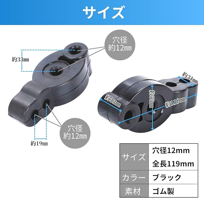 サイズ:穴径12mm、全長119mm カラー:ブラック