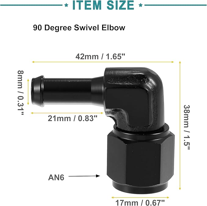 ACROPIX ユニバーサル6ANフィーメール燃料ホースフィッティングアダプター90度AN6から5/16インチスイベルホースバーブフィッティングアルミニウム合金ブラッ ク-1個パック