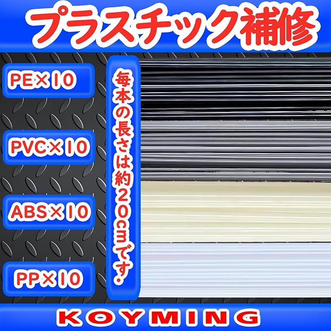 KOYMING プラスチック溶接棒 PP/PE/PVC/ABS 4色/40本セット プラスチック 溶接 長さ20cm プラスティックの溶接棒 プラスチック補修
