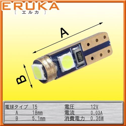 エルカ(Eruka) T5 LED 爆光 ホワイト 白 12V 電球 メーター球 超高輝度3030型2チップin1パッケージLED 3連(LED6個クラスの明るさ) 色合選別済 国内検査品 5個入 T5-093-5S