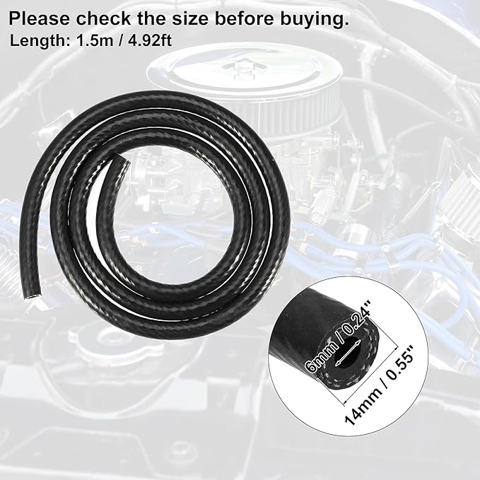 X AUTOHAUX シリコン真空チューブ ホースライン 自動車 真空ホース エンジン 吸気 真空ホース パイプ 自動車用 耐熱ホース バキュームホース シリコン真空ホース 燃料ホース ブラック 内径6 mm 長さ1.5m