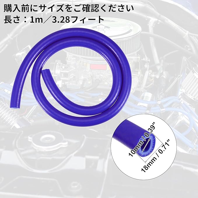 シリコン真空チューブホースライン 耐熱ホース バキュームホース シリコン真空ホース 燃料ホース :長さ:1m / 3.28ft、内径:10mm / 0.39"(D)、外径:18mm / 0.71"(D)、壁の厚さ:4mm / 0.16"(T)。
