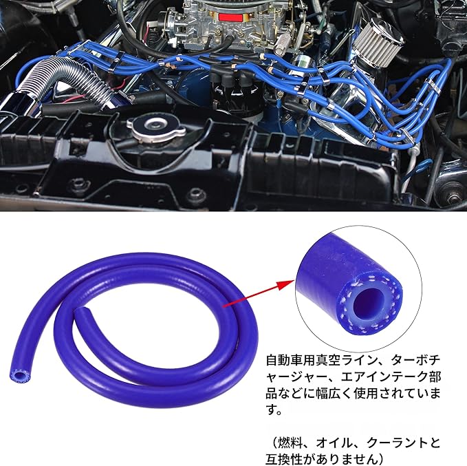 取り付けが簡単で、エンジンや真空チューブを必要とするものの交換用ホースとして使用するのに適しています。 ご注意ください: シリコンヒーターチューブは燃料やオイルに対して耐性がありません。