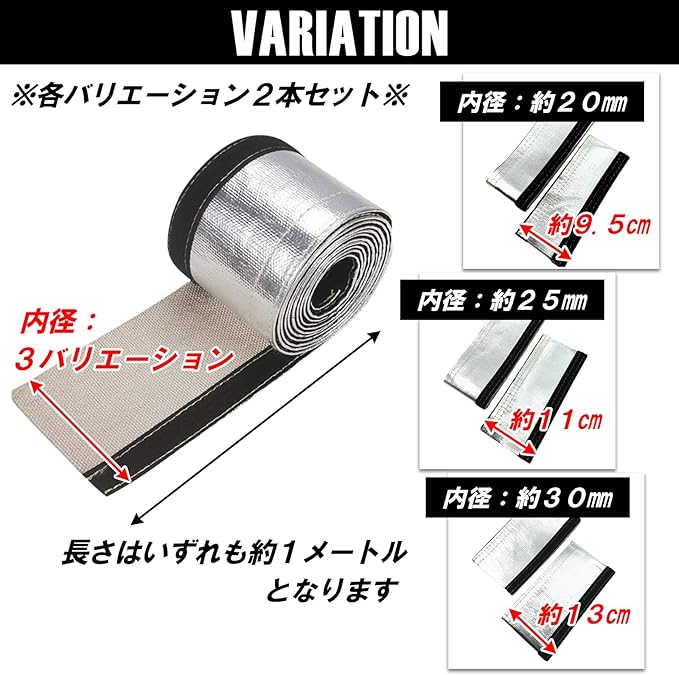 HTharros アルミサーモチューブ 断熱 遮熱 熱対策 内径2.5cm 長さ1m 2本 マジックテープ式 2.5-2