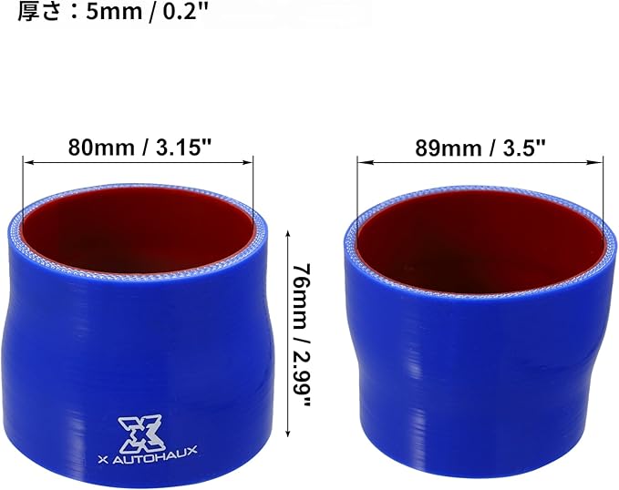 X AUTOHAUX シリコンホース ストレート シリコンパイプ ラジエーターホース 内径80-89mm 長さ76mm ホースバンド付き 耐熱 耐寒 耐久 接続ホース エアクリーナー 接続 ストレート インタークーラーチューブ 車用 ブルー レッド 1個