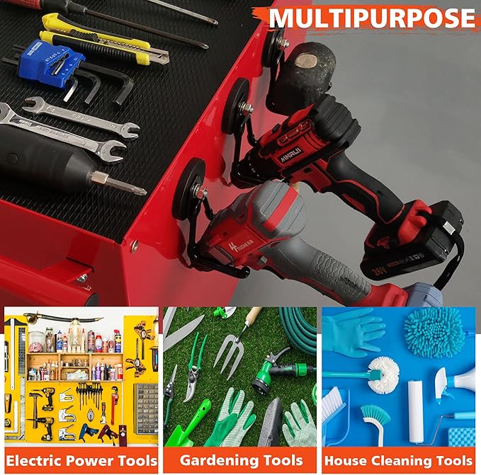 [多用途ネオジウムマグネットフック]: 重量を簡単に支え、ほとんどのアイテムを掛けることができます。 キッチン、倉庫、オフィスなどのシーンに適用できます。 ホース、ジムバッグ、シャベル、熊手、ほうき、モップ、その他のツールなど、さまざまなツールを収納できます。