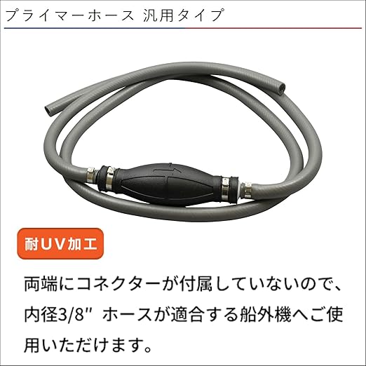 両端にコネクターが付属していないので、内径3/8インチホースが適合する船外機へご使用いただけます。