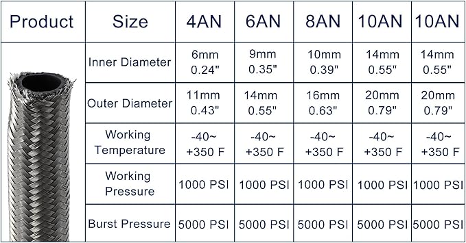 X AUTOHAUX AN10 燃料ラインホース 1M フューエルラインホース 燃料 ガソリンホース フューエルホース 耐圧 耐熱 耐油 耐腐食性 車用オイルクーラー ブレーキホース 燃料ライン ステンレス鋼 CPE ホイール継手付き