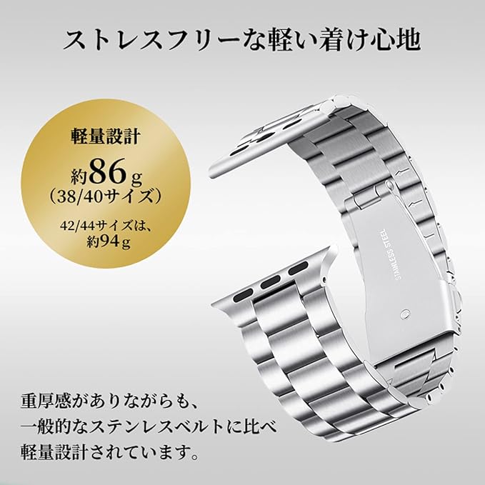AriRi アップルウォッチ バンドはアップルウォッチ専用のステンレススチールの交換バンドです。従来の素材の約半分の軽さの軽量モデルなので毎日着用してもストレスなく着用することができます。