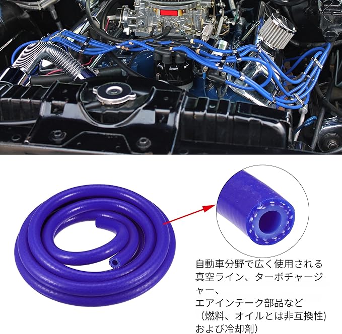 取り付けが簡単で、エンジンや真空チューブを必要とするものの交換用ホースとして使用するのに適しています。ご注意ください:シリコンヒーターチューブは燃料やオイルに対して耐性がありません。