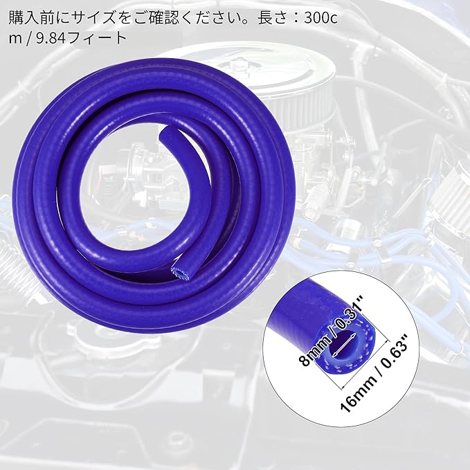 X AUTOHAUX シリコンホース シリコンチューブ 耐熱ホース バキュームホース シリコン真空ホース 燃料ホース自動車用 耐熱ホース バキュームホース シリコン真空ホース 燃料ホース エンジンエアインテークバキュームホース パイプ ブルー 内径8mm 長さ3 m クーラント インタークーラーパイプ エンジン