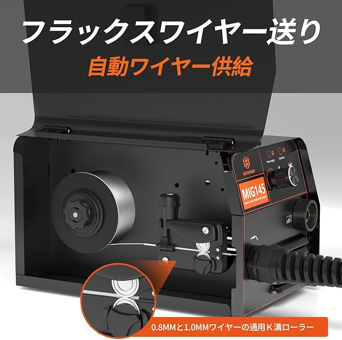 H HZXVOGEN ノンガス 半自動 溶接機 半自動溶接機 100V/200V 兼用 MIG溶接機 145A インバーター搭載 定格使用率40% 軽量 小型 軽工業 家庭での DIY プロジェクト 簡単な修理に適しています 日本語説明書 MIG145