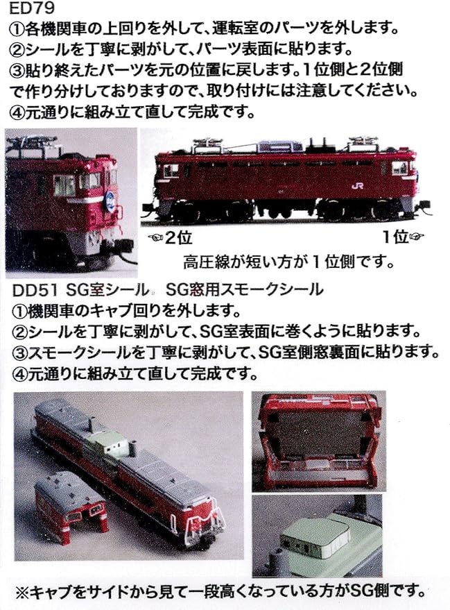 セット内容:EF81運転室 2両分・ED79運転室 1両分・DD51 SG室シール、SG窓用スモークシール 2両分。