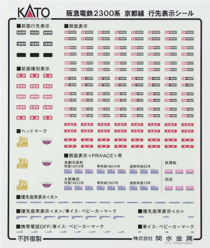付属品:交換用前面表示「京都河原町/準特急」「無地」 2、行先表示シール 1。